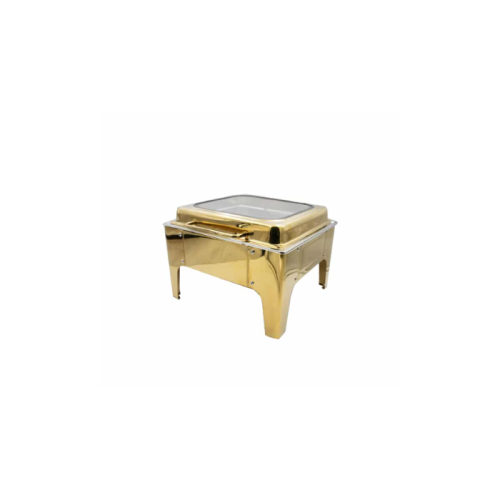 This elegant stainless steel chafing dish features a transparent window for easy food identification. With a 9L capacity, it includes a food pan, water basin, hinged lid, and 2 fuel holders. Perfect for buffets and catering events